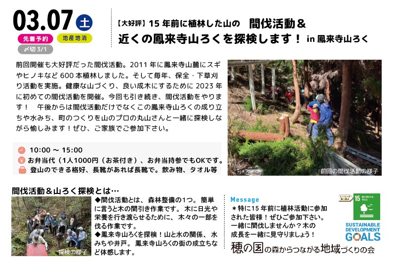 皆様のご要望に応えて3月に間伐活動を開催します!